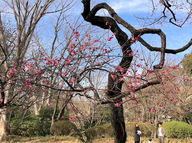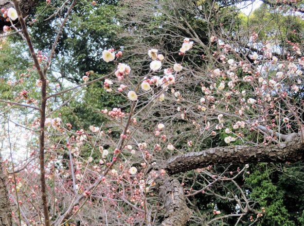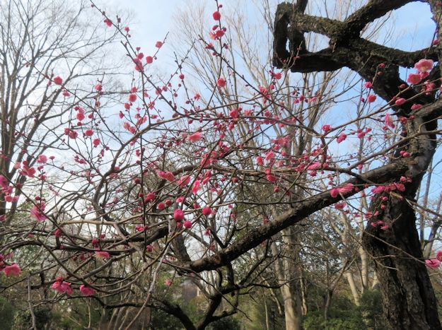 有栖川宮記念公園・梅園の梅が咲き出しています。
