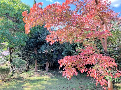 途中、車外の様子は撮影できませんでした。伊部のお宅の様子です。 そろそろ紅葉が始まっていました。