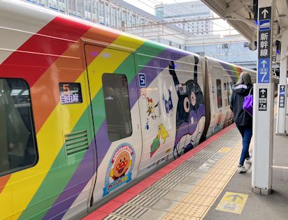 岡山駅には、アンパンマン列車が停まっていました。松山行きのようです。11時58分発の のぞみに乗車です。